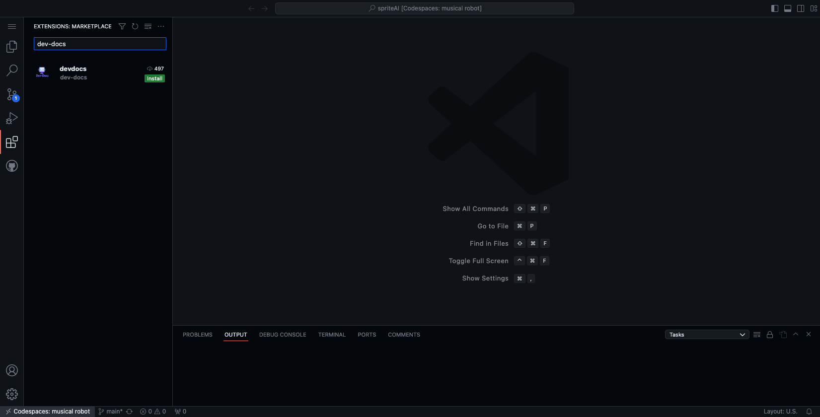 Click on the Dev-Docs extension button in your GitHub Codespace or VS Code Editor. Select sign in and then follow the steps to select the org you created when you set up your account.